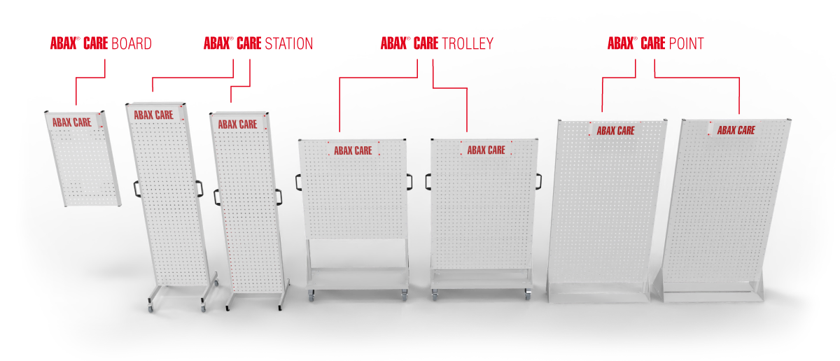 Die ergonomischen Handgriffe und die optionalen robusten Lenkrollen sorgen für zusätzliche Mobilität und durch die schnelle und einfache Handhabung trägt das ABAX® CARE-System maßgeblich zur Verbesserung der Ordnung und Effektivität bei.